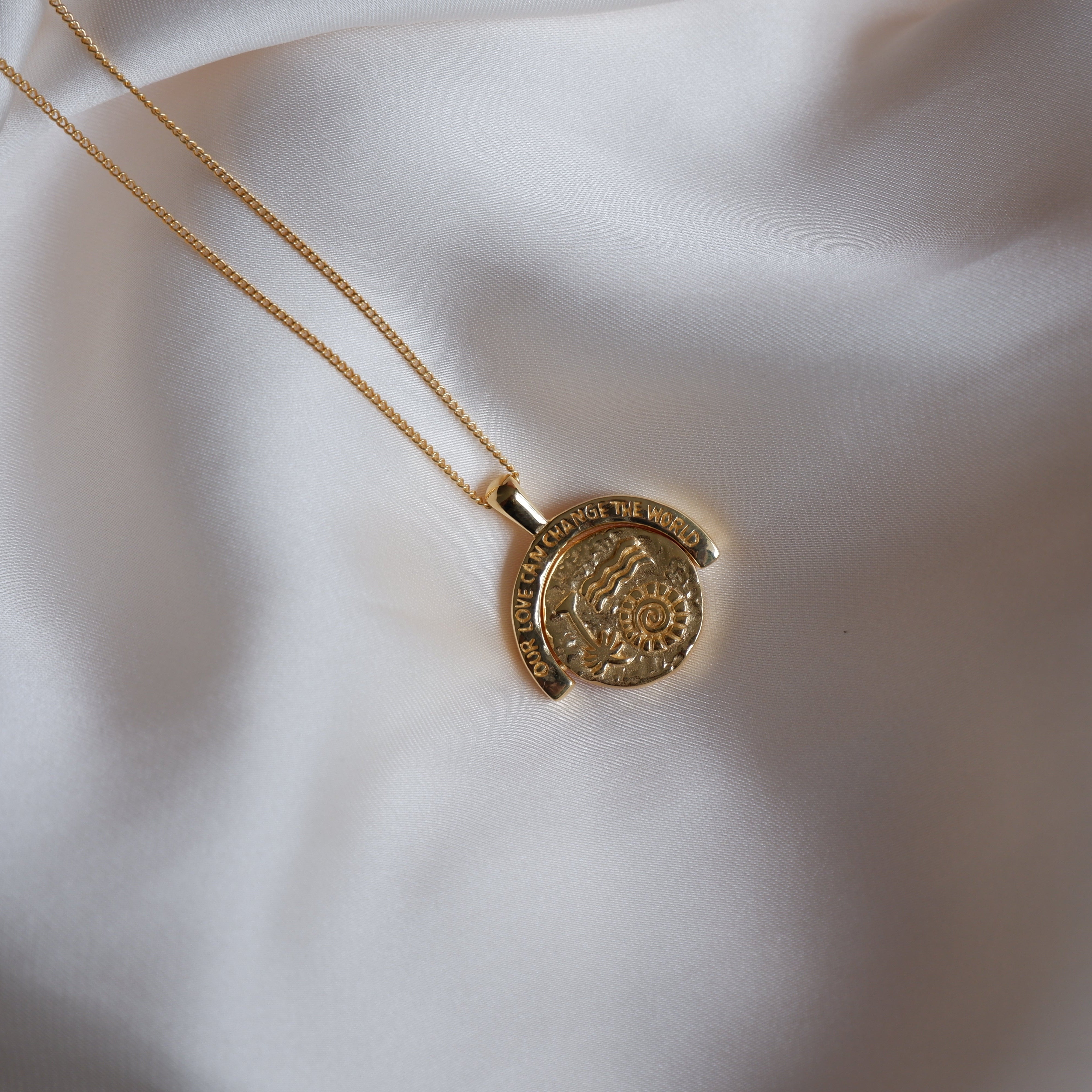 Sold outLuna & Rose x Tahnee Kelland ‘Dead & Thriving’ necklace in gold, featuring her iconic mother artwork, handmade in Bali from recycled sterling silver and 18kt Gold vermeilLuna & Rose x Tahnee Kelland ‘Dead & Thriving’ necklace in gold, featuring her iconic mother artwork, handmade in Bali from recycled sterling silver and 18kt Gold vermeil