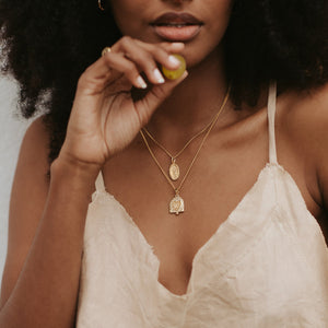 We suggest getting a piece of string or a measuring tape and pop it around the back of your neck to measure exactly where you would like the pendant to sit on your body. For a rough guide, (as we all have different & equally amazing bodies), the 23” chain sits around or just above your nipple line, and the 16” chain sits at your top collarbone.