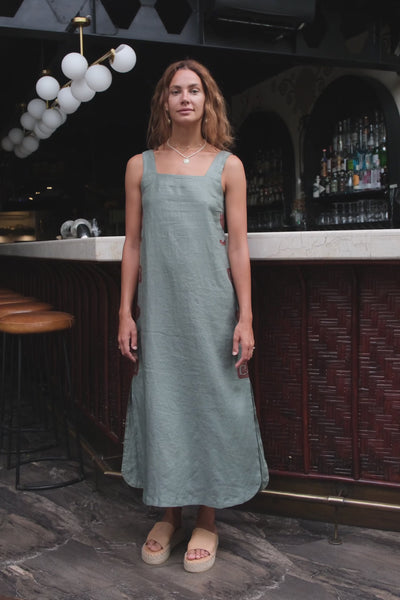 Think poolside glamour meets effortless cool — the Poppy Dress is all square neckline, floor-grazing length, and leg-loving splits. Hand-sewn appliqué gives it that one-of-a-kind detail, like it just strolled out of a Slim Aarons cocktail snapshot. Dress it up with heeled boots for a night worth remembering, or slide into flats for a Bondi-style long lunch.