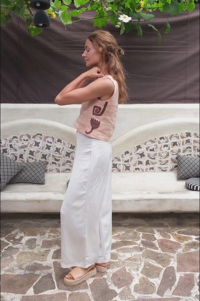 A loose fitting Linen Top with hand sewn details that will get heads turning. The perfect accompaniant to your favourite Jeans, Linen pants (Hello Banks Pants) or our Mabel Wrap Skirt.