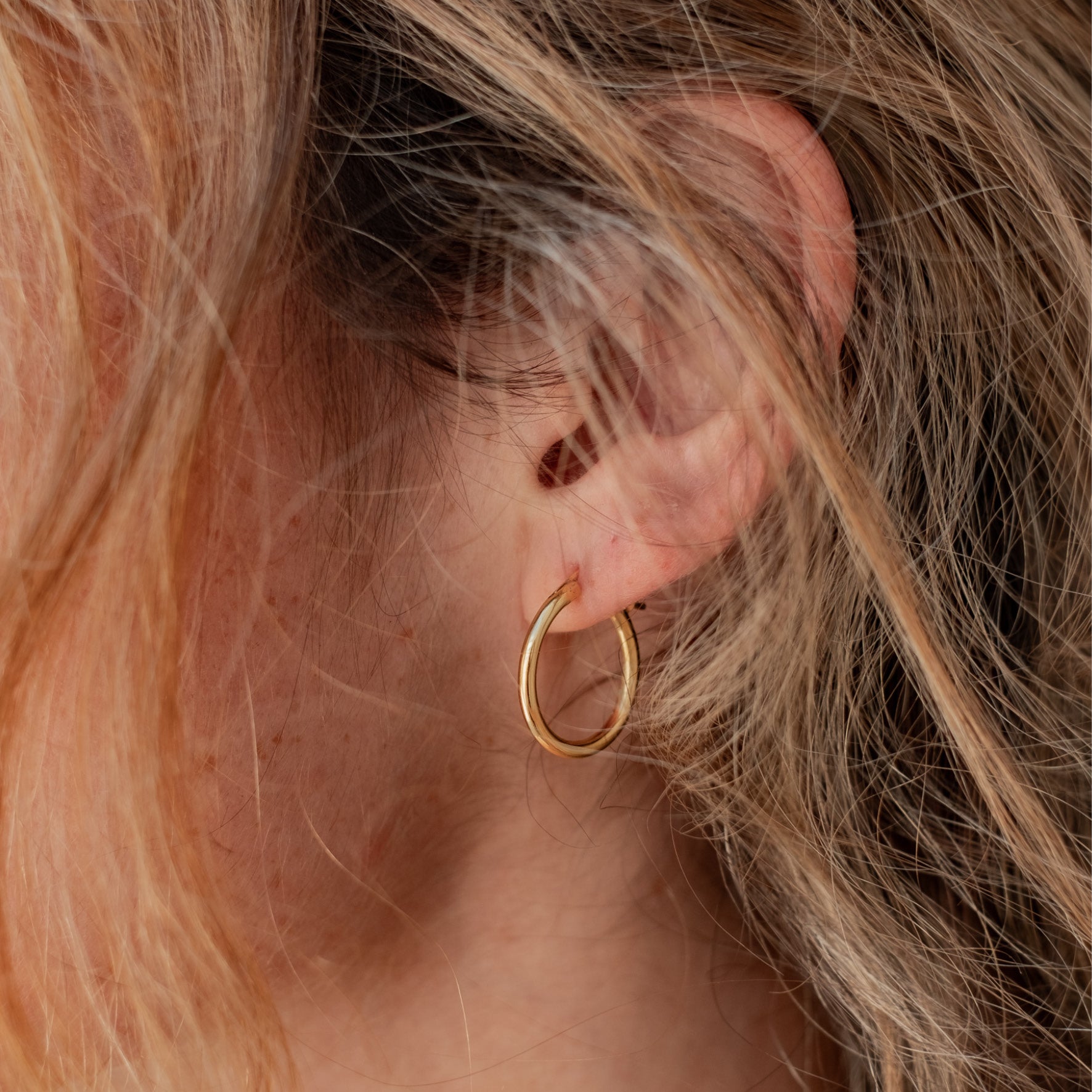 Our signature tube hoop earrings are a refreshing addition to the Luna & Rose Classics Collection that can be worn as an everyday staple or used as a base pair to style your fun favourites next to in your lobes. These classic hoops are best worn with, well, every outfit! Style them on the weekends with a T-shirt & jeans or take them to the beach club in Ibiza this Summer. Served up in 4 classic sizes, take your pick of a bolder look with our 40mm hoops or a more subtle, everyday-every hour wear with our 10mm hoops.