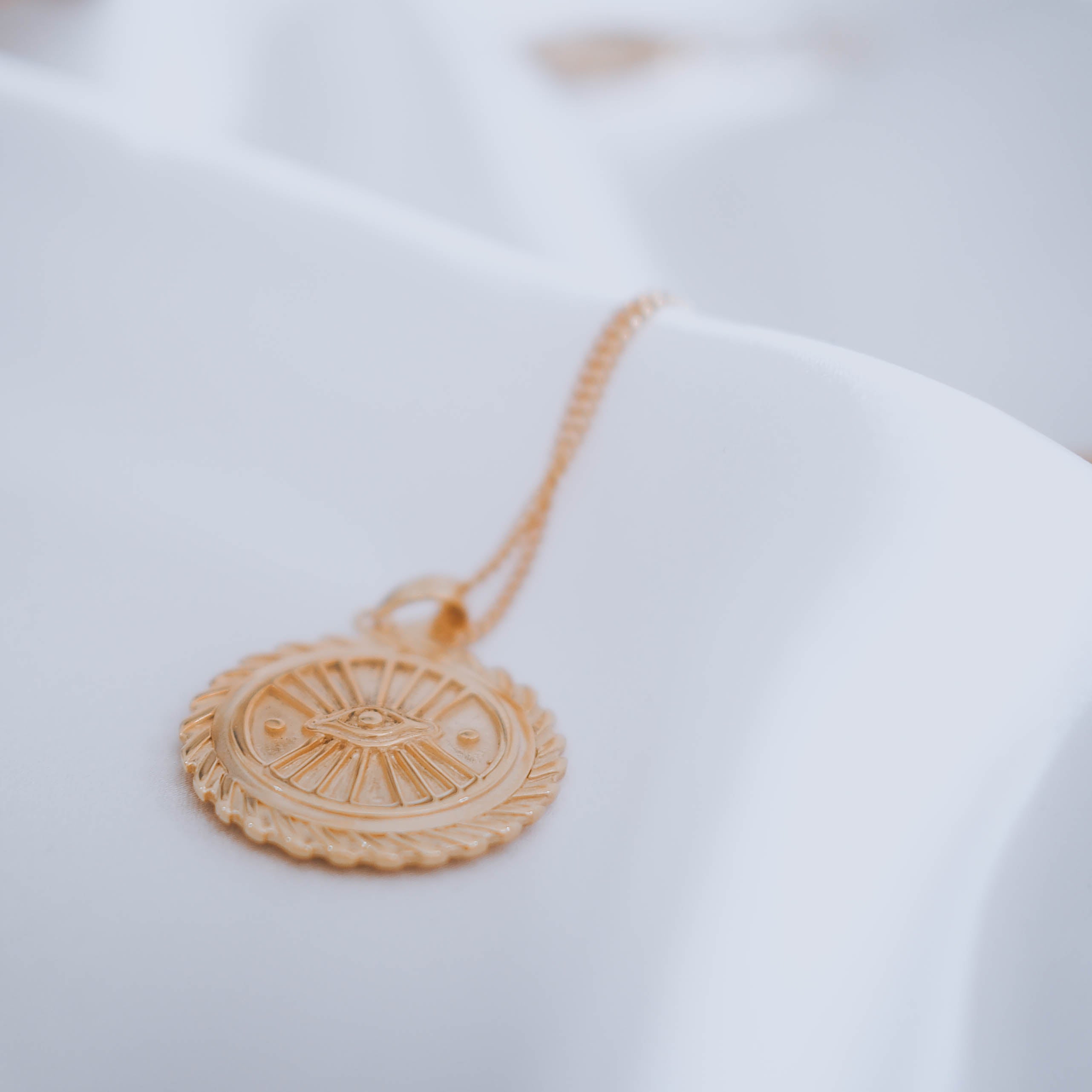 On the flipside of the PROTECTIVE EYE Pendant is an offering of an evil eye. This icon is said to reflect off all evil influences that may come your way along your journey when you wear this talisman. Choose to wear the Eye close to your heart, protecting from the inside or reflecting evil that may come your way from external sources.